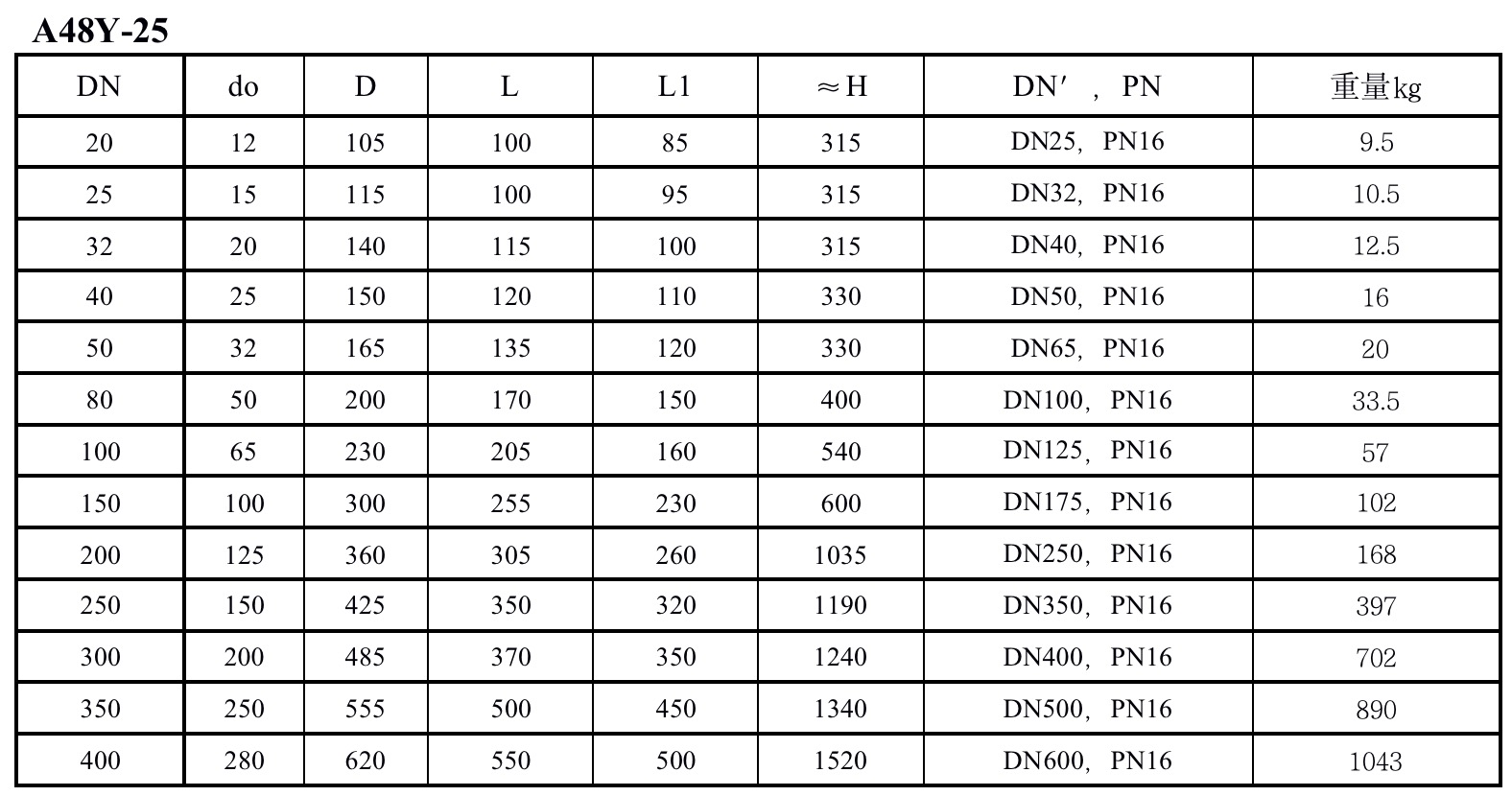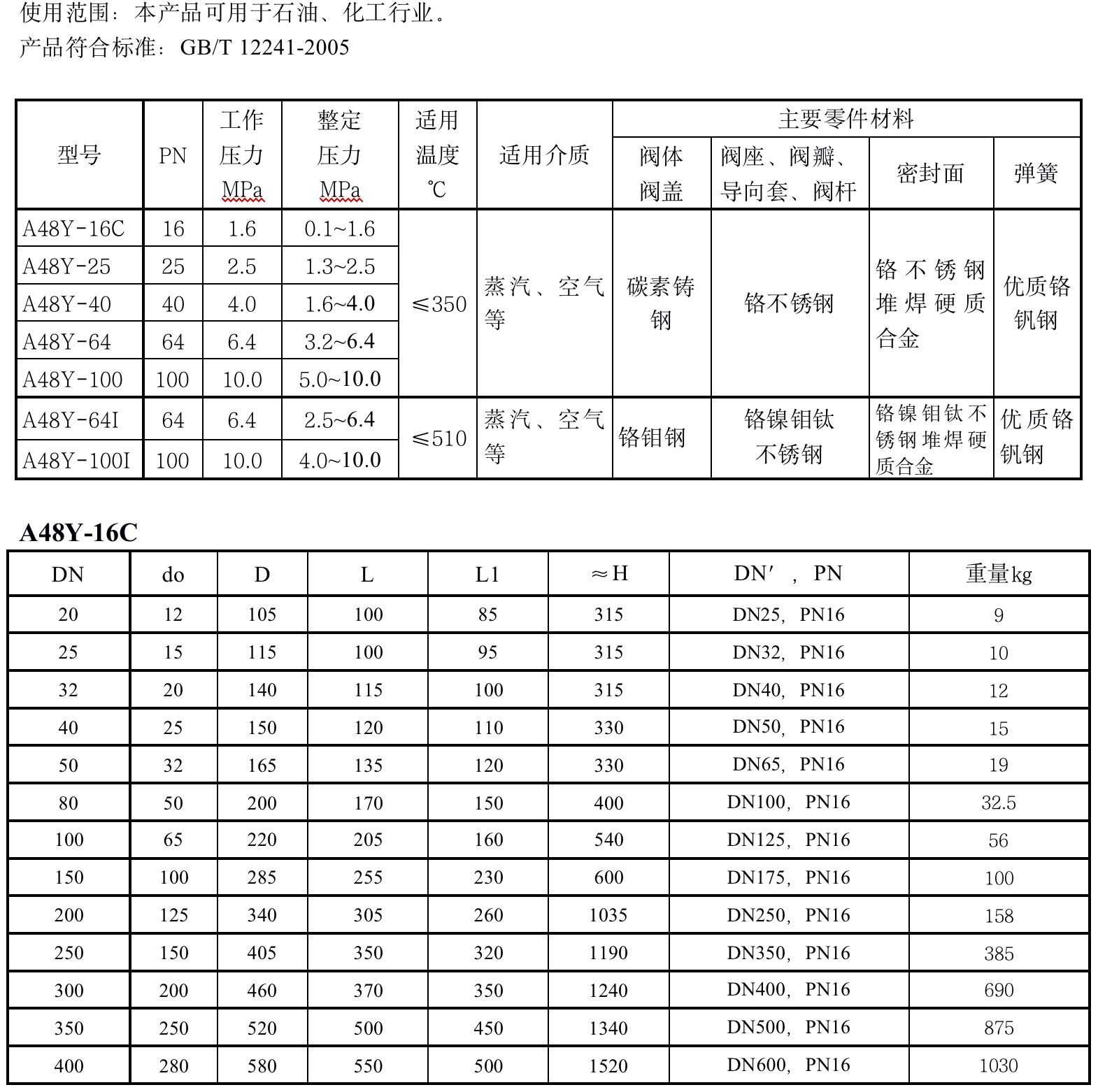 A48Y型PN16~100